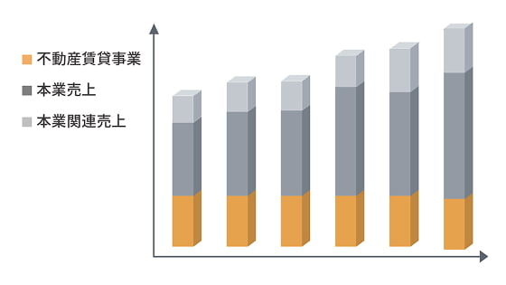 長期にわたり安定した収益を出すことのできる賃貸事業を、本業の下支えとして財務基盤に組み込むことにより、経済状況や市況の変化に左右されやすい事業や連動する事業の利益安定化を推進します。