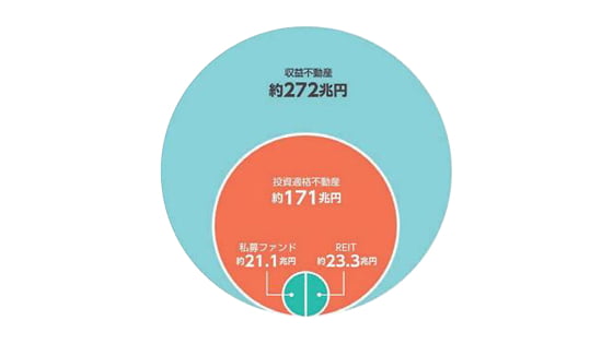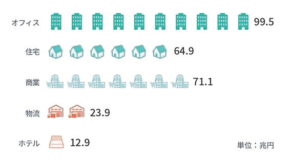 収益不動産の資産規模は約272兆円であり、そのうちオフィスの規模は約99.5兆円と非常に巨大な市場です。